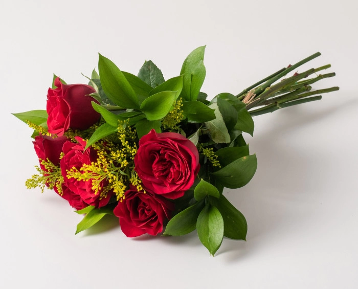 A cor vermelha intensa remete à paixão. O buquê composto por seis rosas vermelhas são imponentes e ideais para presentar quem você ama. Assim, é possível surpreender mesmo estando longe.